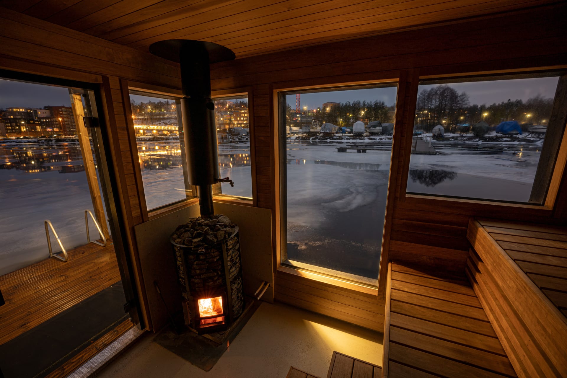 Ajoittain yleisillä vuoroilla on käytössä myös palju, joka täydentää rentouttavan järvi-illan elämyksen.