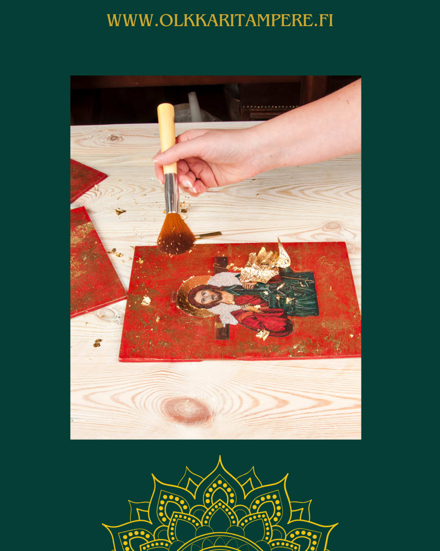 Pajassa opetellaan perinteisiä käsityötaitoja, maalaamaan siveltimellä ja käyttämään lyöntimetalleja. Käytämme työhön emalimaalien lisäksi siis myös lyöntimetalleja, joita käytetään aidon kullan kanssa mm. kirkon kupoleissa, kehyksissä ja näyteikkunoissa.