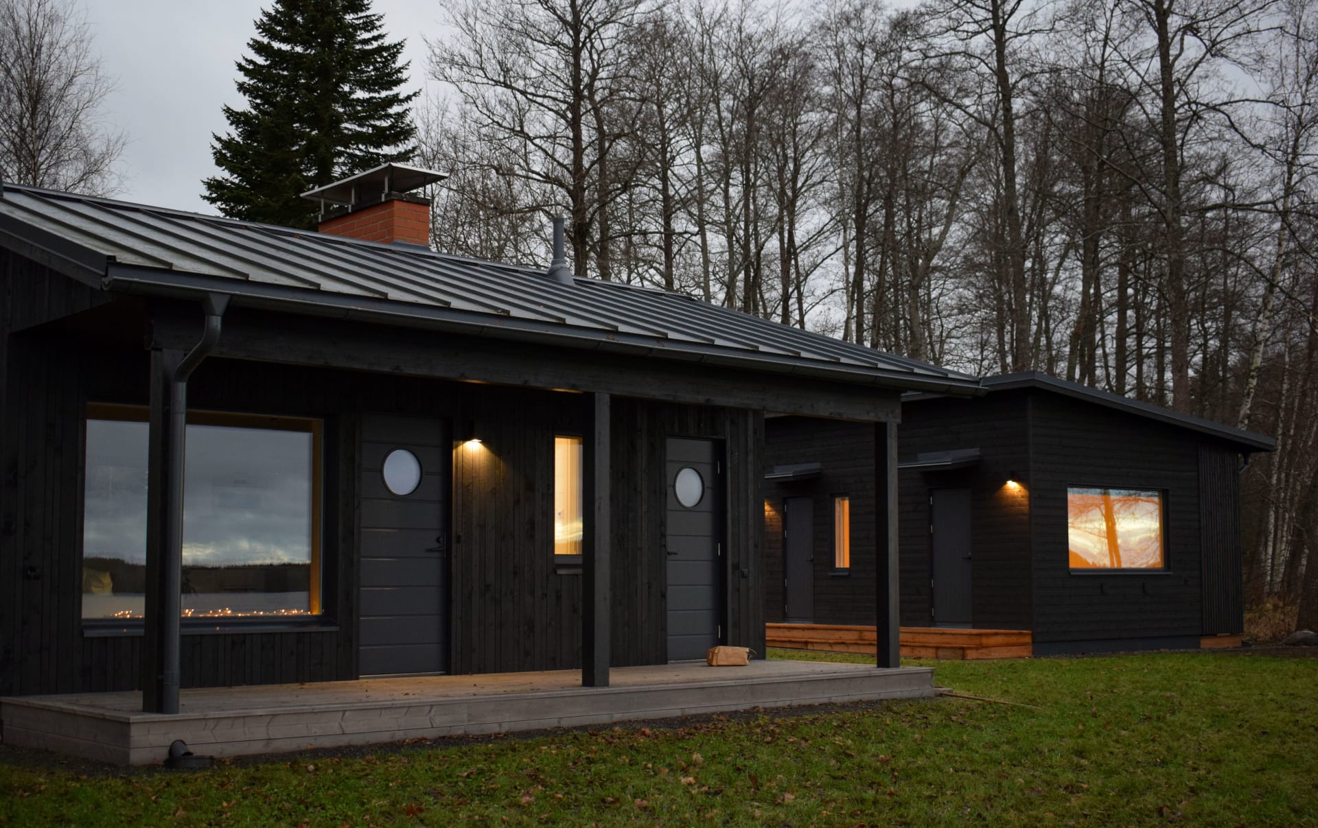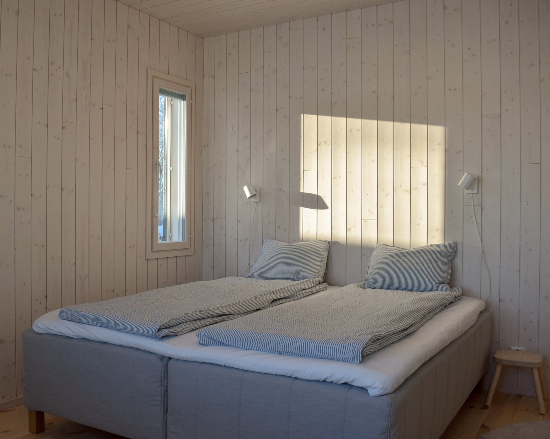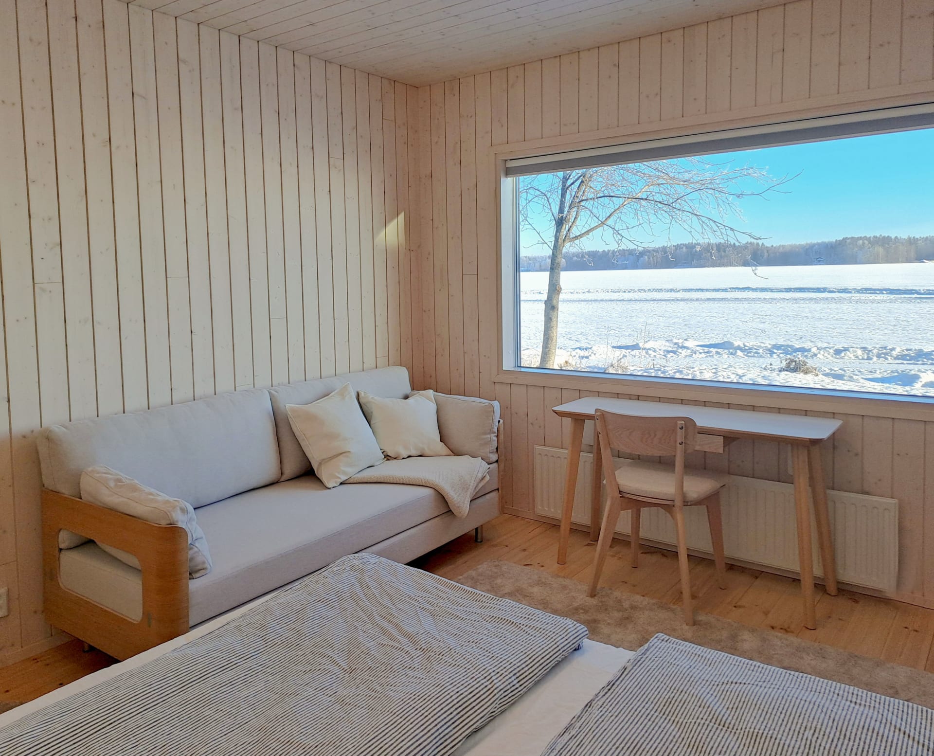 Villa Vanaja is located in Southern Finland near Tampere, on its own private cape on Lake Vanajavesi. Unwind in the wood-heated sauna and enjoy a refreshing swim in the lake — or try ice swimming during the winter months. The surrounding forests and trails are ideal for outdoor activities as well as quiet moments in nature.