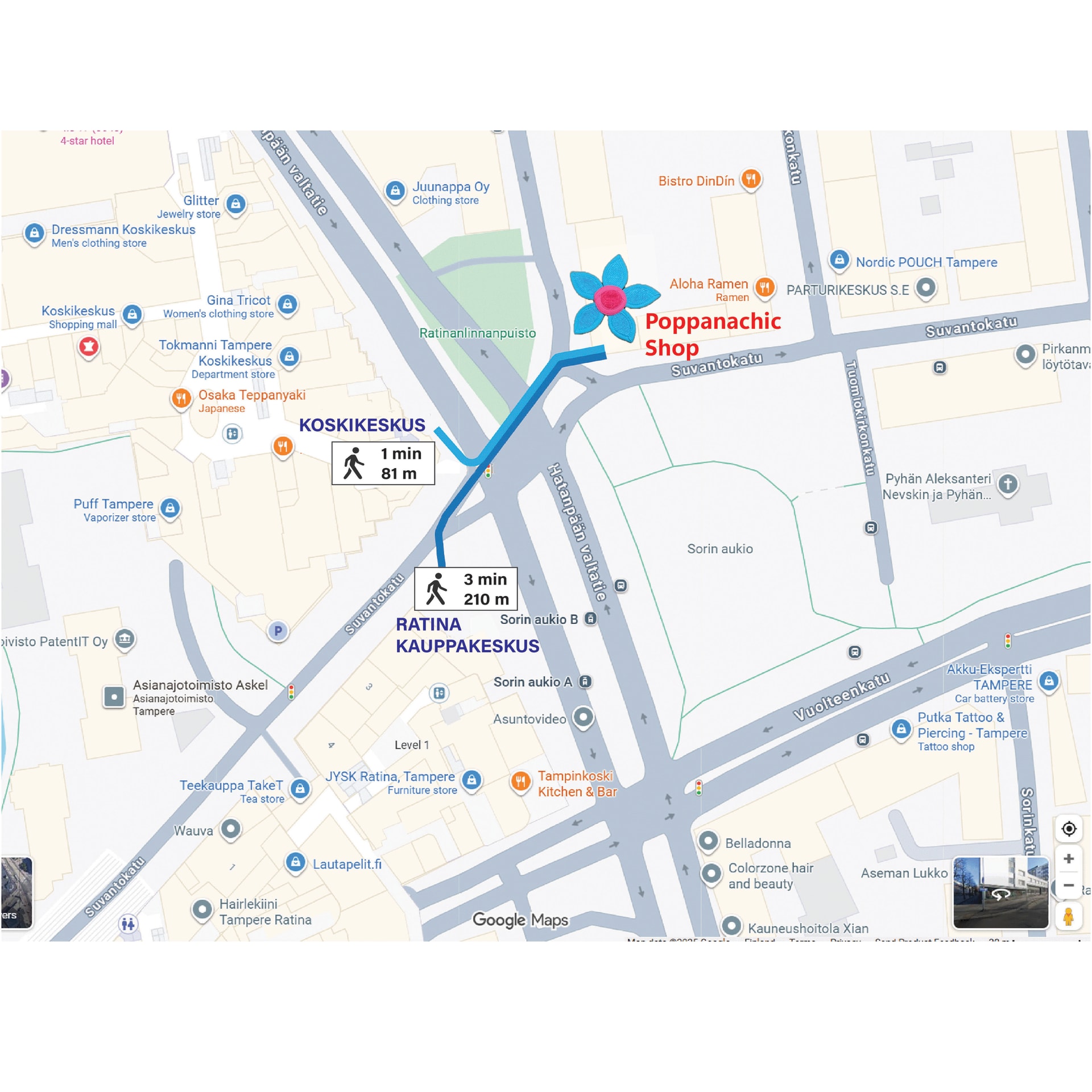 Poppanachic Shopista löydät suomalaisia brändejä, rentoa eleganssia sekä mahdollisuuden teettää mallistojen vaatteita omien mittojesi mukaan. Myymälämme sijaitsee Tampereen ydinkeskustassa osoitteessa Suvantokatu 7–9, aivan Nokia Arenan läheisyydessä.